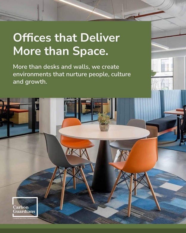Beyond Offices into Experiences showcases Carbon Guardians’ mission to create workplaces that inspire, perform, and sustain. Every design begins with carbon-neutral principles, integrating air quality, daylight, and human-centric details. IoT-enabled systems ensure energy efficiency, while inclusive layouts foster connection and belonging. These offices go beyond physical infrastructure to deliver wellbeing, creativity, and long-term business value—demonstrating how sustainability and performance converge to shape the future of meaningful, high-impact work environments.